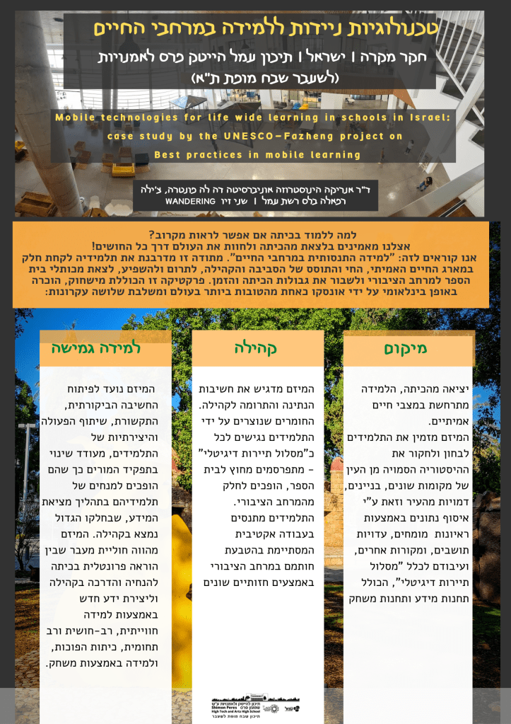 כנס צ’ייס 2022 לחקר חדשנות וטכנולוגיות למידה התקיים השנה ה-17 מטעם האוניברסיטה הפתוחה, ב- 15 בפברואר 2022. הכנס משמש זירת מפגש לדיון, הצגת עבודות והחלפת דעות בין חוקרים ומומחים העוסקים בתחום והוא מיועד לחוקרים, סטודנטים ואנשי מקצוע בתחומי טכנולוגיות הלמידה והחדשנות הטכנולוגית. הכנס התקיים בצורה מקוונת, וכלל גלריה וירטואלית של פוסטרים אקדמיים. במסגרת זו הוצג חקר המקרה שזכה על ידי אונסקו כפרקטיקה נבחרת מישראל באמצעות פוסטר אקדמי. סיגל אלמי מלמן, רפאלה בלס ושני זיו מחברת וונדרינג – ענו לשאלות הקהל הסקרניות ממכללות המורים לאחר הצגת “פרקטיקות ניידות ללמידה התנסותית במרחבי החיים“, והדגישו שמדובר במתודיקה מתוקשבת מתמשכת לאורך שנים, ולה תוצרים בני קיימא בכשמונה מסלולים דיגיטליים שונים – רובם בעיר תל אביב.