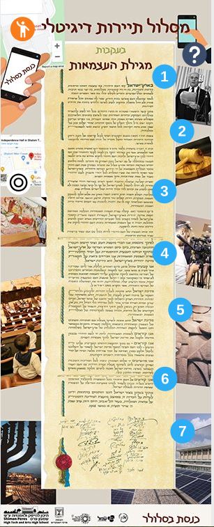 באמצעות סריקת QR מוצעות למבקרים תחנות מידע רבודות או מסלול דיגיטלי מגוון, המונגש לבעלי מוגבלויות, ובו מידע, סרטונים ותמונות במכשיר הטלפון הנייד, המספרים את סיפורם של המוצגים, יצירות האמנות, ההיסטוריה והארכיטקטורה של הכנסת, כשהחוט המקשר הוא מגילת העצמאות כ"מפת מסלול" – ממושג למוצג.