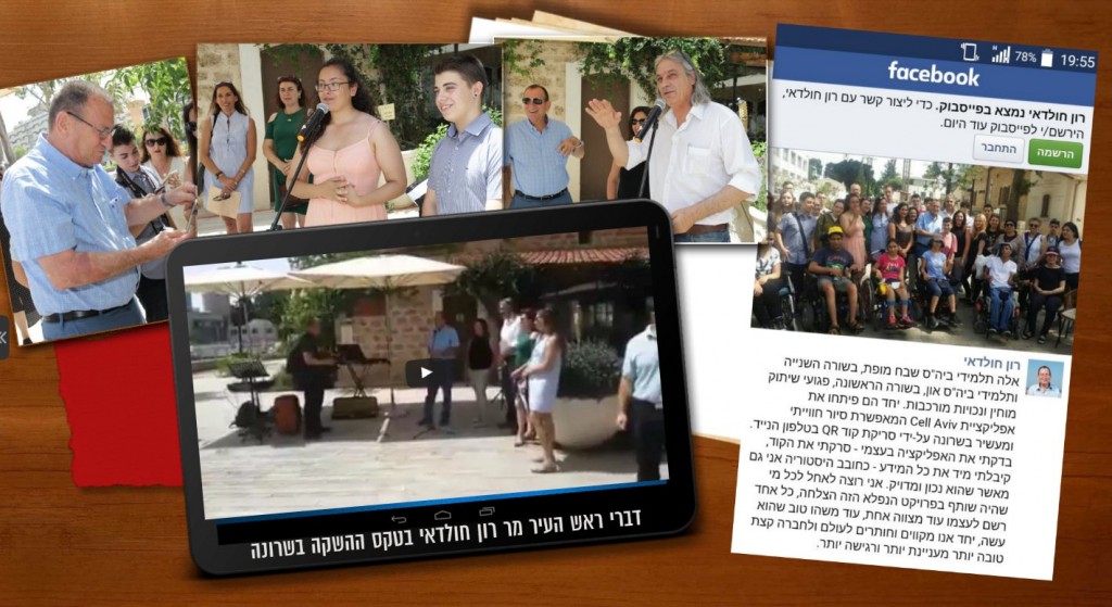 מסלול:מפה להורדה: צד א, צד ב' English map A, B שרונה מצגת סל-אביב (שנתיים)nglish lish the First year פלייליסט מיזם Cell-Aviv (תל אביב בסלולרי) במסלול שרונה, פותח על ידי התלמידים כחלק מפרויקט יזמות ובמסגרת חובות התלמידים בלימודי מטלת הביצוע באזרחות ובהיסטוריה. מדובר במיזם שמטרתו להציע מידע למטיילים בעיר – תיירים בוחרים מסלול מתוך מאגר ולהנות ממגוון תכנים היסטוריים, גיאוגרפיים ותרבותיים ישירות לסלולרי. החומרים כוללים סרטונים, טקסטים, דפים אנציקלופדיים, שירים ועוד. בדומה להדרכה במוזיאון, התייר יטייל בין תחנה לתחנה ויוכל להכיר וללמוד את הרבדים העמוקים של חיי העיר. במהלך הפרויקט נקבע מסלול, התלמידים התחלקו לצוותים וכל קבוצת תלמידים קיבלה אחריות לבניית תחנה וראיינה אנשי מפתח לצורך הפקת סרטונים היסטוריים להמחשת המסלול. כך למשל, ראיינו התלמידים את תת אלוף במילואים נחמיה דגן, אשר שימש כמפקד להק יסעורים במלחמת ההתשה והוביל את חטיפת המכ"ם הסובייטי משטח מצרים, מבצע אשר תוכנן כולו בבית הסביבון בשרונה, לשעבר בית מודיעין אויר; למדו על מבצעי המחתרות כנגד הבריטים מההיסטוריון ד"ר ניר מן, אשר המחיש להם בצורה חיה ומרתקת את האפקט החברתי של פעולת הארבעה בליל המשטרות (על שמם נקרא הרחוב הסמוך); מפי נכדתו של הרוקח היהודי איזידור ממלוק, שהיא רוקחת בעצמה – למדו את סיפורו של הרוקח היהודי היחיד במושבה הטמפלרית הגרמנית בשרונה, ואף התוודעו למחלוקות השונות בנוגע לשימור ופיתוח, מפי תמר טוכלר – מהמועצה לשימור אתרים, שהיתה הרוח החיה במאבק לשימור המתחם. לאורך כל העבודה, עמדו בקשר שתי הקבוצות – מעמל ומאון, באמצעות קבוצת ווטסאפ משותפת שפתחו יחדיו. התלמידים תיארו את חווית הלמידה: "היה כיף ללמוד היסטוריה ממי שעשה היסטוריה…" פרויקט רב תחומי – היסטוריה ותקשוב (רפאלה בלס) – אזרחות (אירית דגני) . בית ספר און: ענת גולדשטיין
