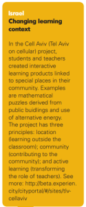 מיזם Cell-Aviv (תל-אביב בסלולרי) במסלולים שונים, מדובר במיזם משותף של תלמידי עמל הייטק ואמנויות ע"ש פרס, ותלמידי בית ספר "און" לחינוך מיוחד, המתקיים החל משנת 2014. המיזם, המתחדש ללא הרף וכולל מגוון מסלולים, מציע מידע למטיילים בעיר ומאפשר מגוון תכנים היסטוריים, גיאוגרפיים ותרבותיים באמצעות סריקה פשוטה של QR קוד אחד, שמוצמד לשילוט הבתים. החומרים כוללים סרטונים, טקסטים, איורים ועוד. חלק מהתחנות במיזם מציעות תכנים ב- 360 מעלות, הניתנים גם לצפייה מרחוק או במשקפי VR. המבקר עובר בין התחנות ונחשף לרבדים העמוקים של חיי העיר. המידע מוצג באופן שיהיה בהיר ודובר שפת סימנים, לטובת אוכלוסיית עם לקויות. מדובר במתודיקה מתוקשבת מתמשכת לאורך שנים, ולה תוצרים בני קיימא בכשמונה מסלולים דיגיטליים שונים – רובם בעיר תל אביב. המיזם נטוע בקהילה ובסביבה, כחלק מתרומת בתי הספר למרחב הציבורי.